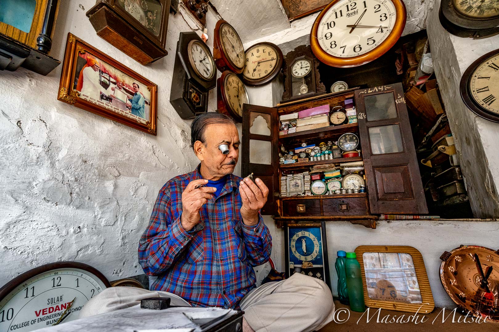 午後はブーンディ郊外の旧市街を訪れて撮影します。この街では片メガネをかけて時計を修理する職人や、スイーツを作る菓子職人、女性が身に着ける腕輪「バングル」を手作りする人々など、バラエティー豊かな「働き者」の姿を撮影することができます。
